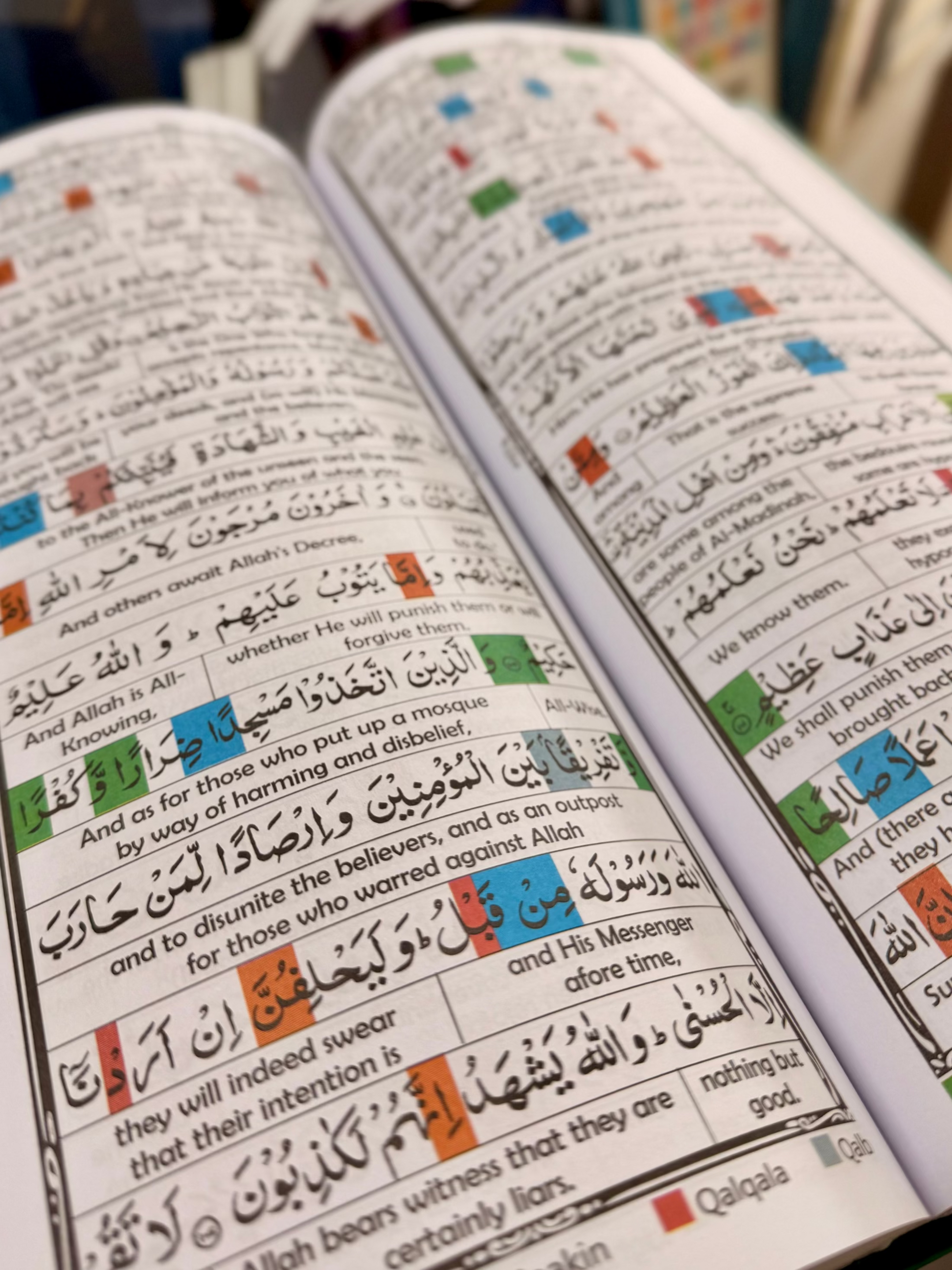 Design: Colours highlight tajweed rules throughout the Arabic script
